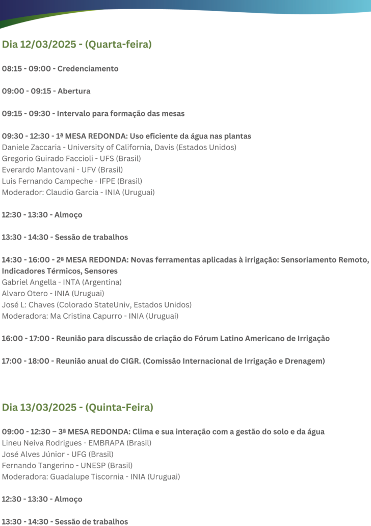 AnteriorPróximo1234 PROGRAMAÇÃO A programação contará com palestras, mesas redondas, apresentações de trabalhos científicos, visitas técnicas e muito mais. REALIZAÇÃO PATROCÍNIO